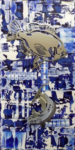 "Les Eaux Intérieures" type 3D Technique Mixte incrustation motif en métal découpe laser sur toile (30x60cm) 2017 Jacqueline MORANDINI, peintre