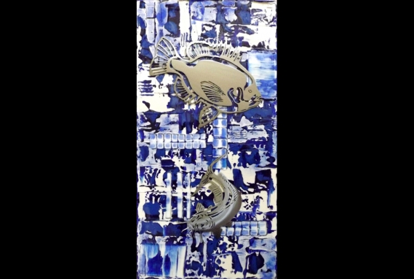 "Les Eaux Intérieures" oeuvre de Jacqueline Morandini. Technique mixte sur toile Type 3D. 30x60cm. avec métal découpé laser. 2017