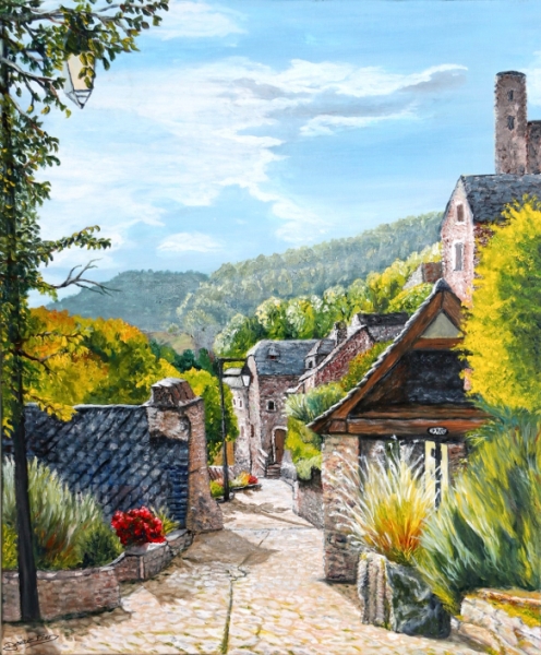 "Village en Montagne". Peinture . (54x65cm) acrylique sur lin - 2018. Oeuvre de Frédéric Boirie.