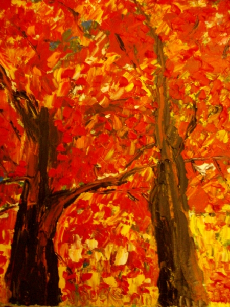 "Feuille Rouge" Huile sur toile (45x55 cm) Peinture de Toshio Asaki