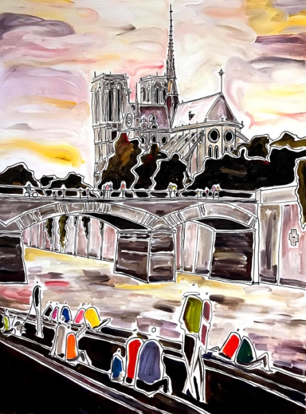 "Les Berges de Seine" peinture (102x76cm) acrylique sur toile Oeuvre de Patricia Kluwe Derderian