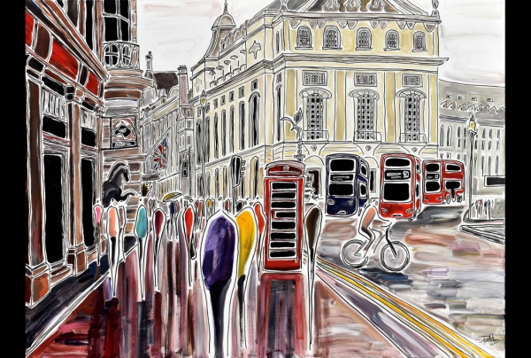 "Piccadilly Circus" peinture (91x122cm) acrylique sur toile Oeuvre de Patricia Kluwe Derderian