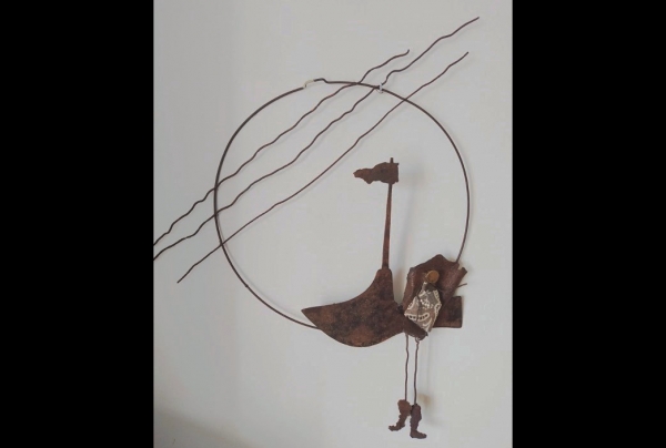 "La Matelotte". Matériaux : tôle rouillée dimension : 50 x 55 cm oeuvre de Marie-Josèphe BALVET sculptrice