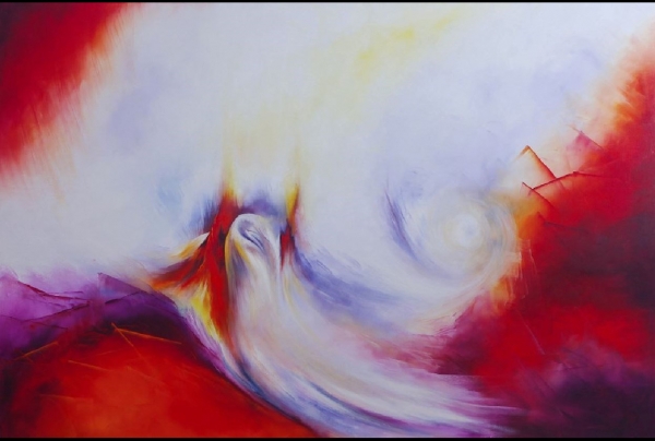 "Le Phénix" , huile sur toile aux couteaux, dimensions: 130 x 195 cm. Oeuvre de Nadine BERTULESSI, artiste peintre abstraite, Lauréate du Palmarès 2023