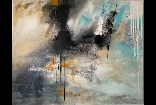 "Timshel", 162x130cm Acrylique sur toile. Mixed Média, Effets craquelés, Modeling Paste, Medium, collage et pastels, oeuvre de Marie Pierre HOGRET