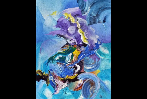 "Elévation" 2023. Peinture Acrylique avec spalters et couteaux. Toile tendue sur châssis bois avec entretoise. H 65, L 50 cm, Epais 2cm. Michèle GUILLOT