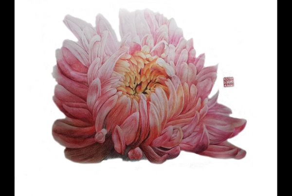 "Pivoine", papier recyclé 160g Gerstaecker, crayon de couleur polychromes Faber Castell, (dim. 60 cm x 42 cm, France, 2023) de l'artiste CLAIRE.J.CHARTIER, Lauréate Recherche et Créativité 2024.