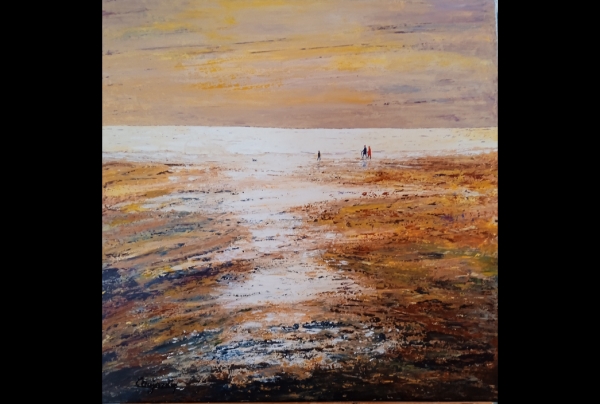 "Crépuscule de Novembre" - Tableau sur toile (50x50cm) peinture acrylique appliquée au couteau. Œuvre de Christiane DUJARDIN, éminente artiste-peintre Lauréate du Palmarès, Médaillée Talent des Arts d'Aujourd'hui - Artiste d'Excellence 2024.
