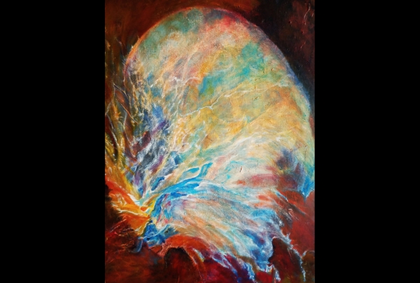 "Neurones", acrylique sur toile, dimensions 50x70cm, œuvre de l'artiste peintre Annie GRENON. Une rare approche par l'abstraction d'un sujet actuel encore mystérieux. Lauréate du Palmarès Talent des Arts d'Aujourd'hui - Artiste d'Excellence 2024