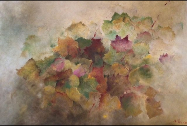 "La Vigne en Automne", huile sur toile (115x85cm) Une expression magistrale de ressentis intérieurs en cette œuvre de l'artiste peintre Rita CAU, lauréate du Palmarès Plaquette d'Honneur avec Médaille de Talent des Arts d'Aujourd'hui Artiste d'Excellence
