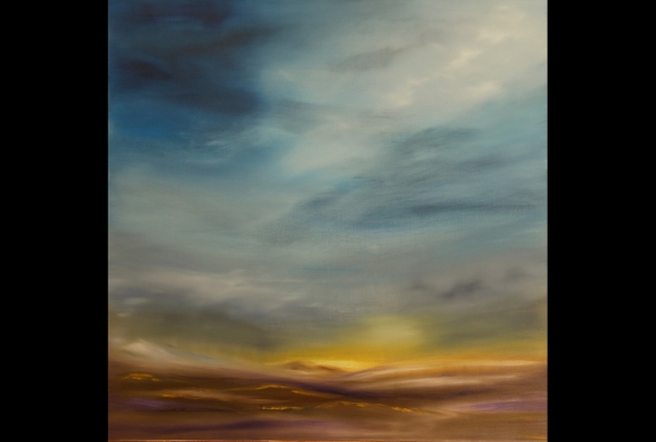 "Le Temps", Huile sur toile (80x80cm), 2021,de Marie RAYNAUD, artiste peintre. Ses oeuvres de haut niveau pictural, subliment les aspects du réel en interprétations parfois quasi-abstraites,réussissant à peindre immatérialité et intemporalité des paysages