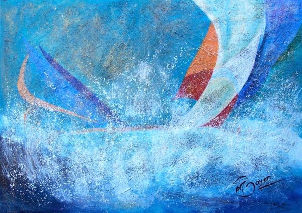 "TEMPETE SUR LA REGATE" PEINTURE D'ANNE-MARIE BOYER, UNE OEUVRE RETENUE POUR SES AFFICHES AU PÔLE EXPOSITION SUD CÔTE-D'AZUR