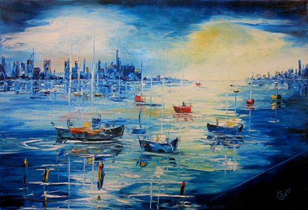 "SÉRÉNITÉ" (HST 73 x 50cm) DE LA PEINTRE ISABELLE GELI, MONTRE LE RAPPORT ÉTROIT ENTRE PAIX INTÉRIEURE ET PAYSAGE PAISIBLE