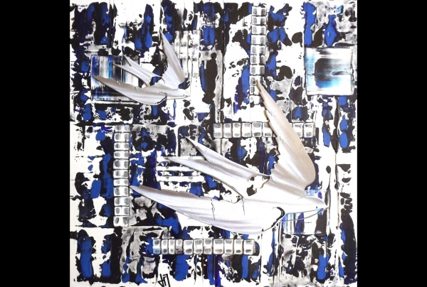 " Ciel d'Azur 2" "oeuvre Jacqueline Morandini 60x60cm Techn. Mixte et métal découpe laser
