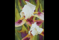 "Iris de Pourpre". Aquarelle 37x27cm, L'Iris fait partie des fleurs préférées de Claude MONET, Annie d'HERPIN, dans ce plan rapproché modélise la pureté et l'élégance, la parure majestueuse et indémodable de cette fleur légendaire.